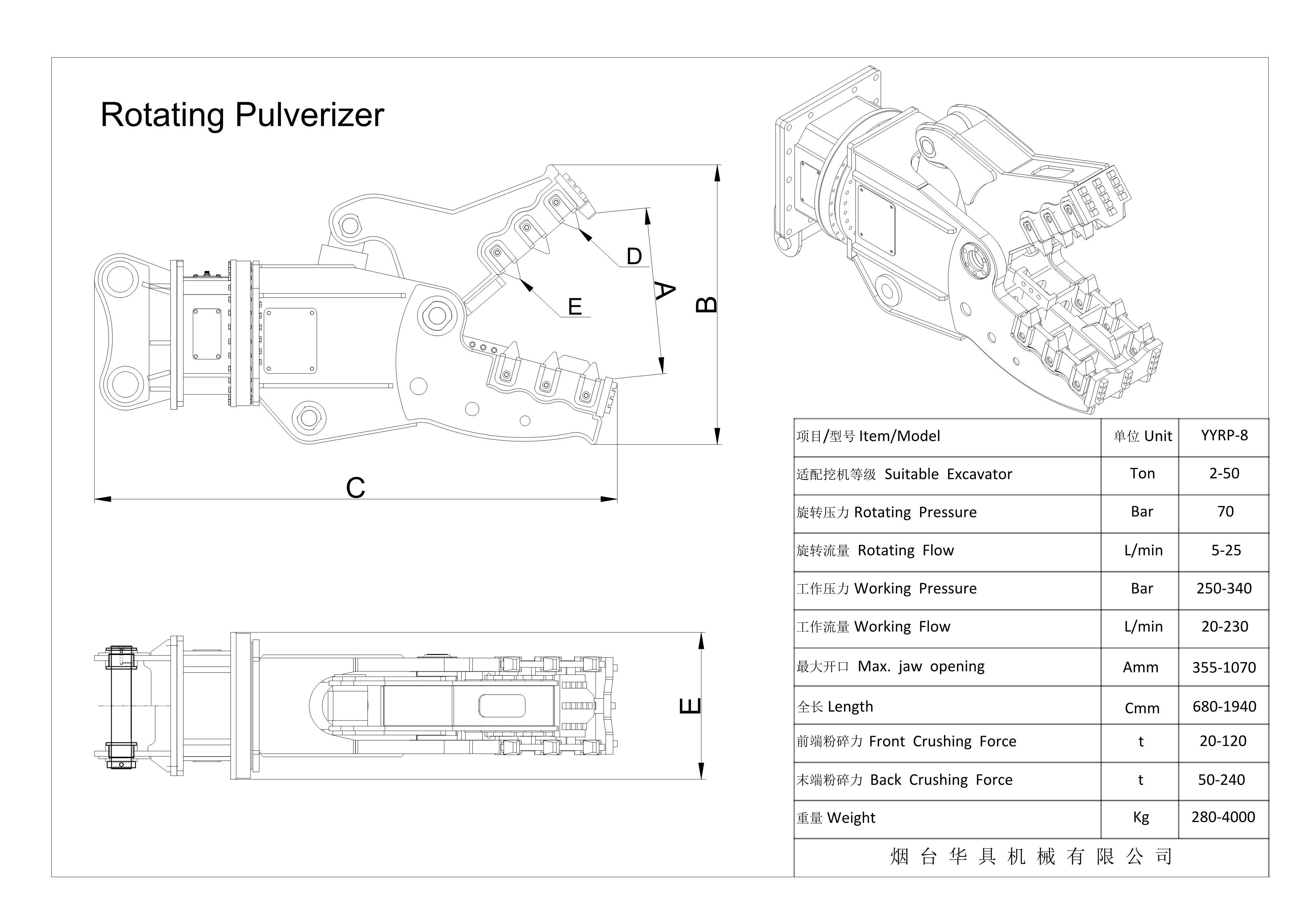 Class of excavator:3-45ton Front Crushing Force:178-1220ton mass:240-2450kg